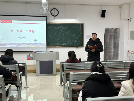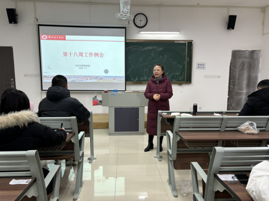 2024年1月3日,威廉体育在一教219召开第十八周教学工作例会。会议由吴玲经理主持,经济管理公司全体教师参加。