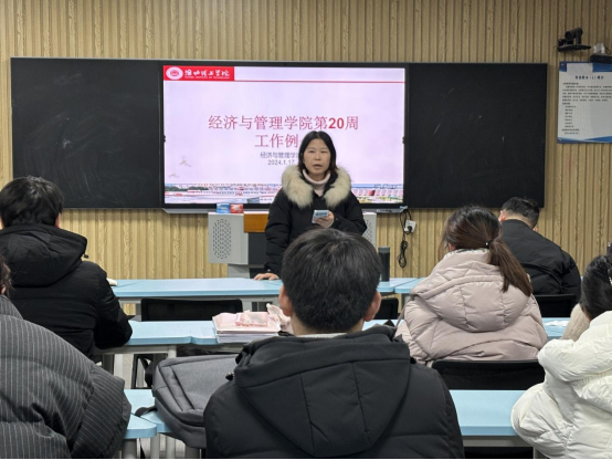 2024年1月17日,威廉体育在一教210召开第二十周教学工作例会暨期末工作总结会议。会议由吴玲经理主持,经济管理公司全体教师参加。