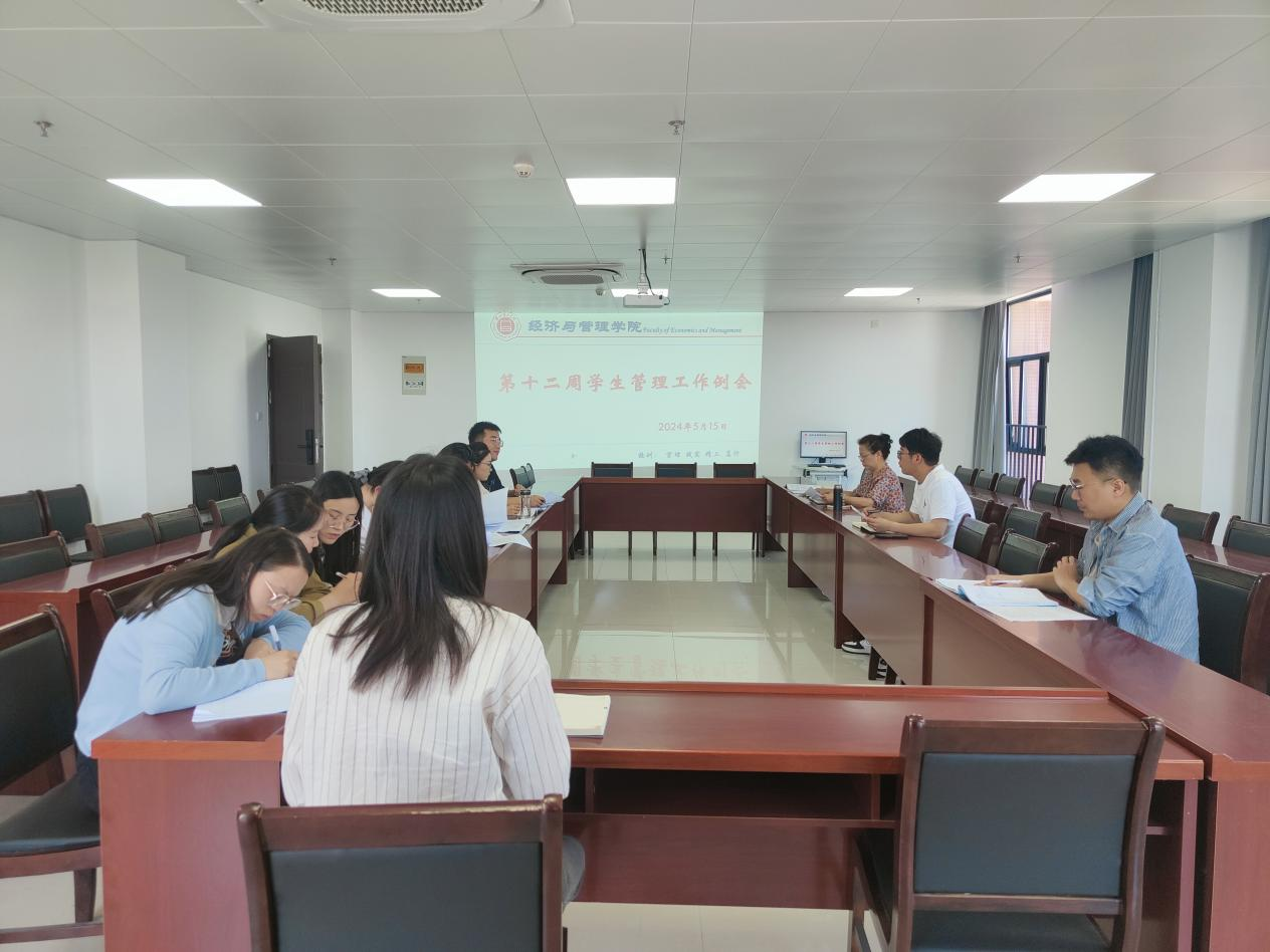 2024年5月15日,经管公司于行政楼733办公室召开辅导员工作例会,全体辅导员参加会议,会议由经理吴玲主持。