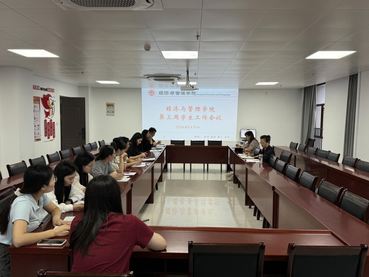 2024年9月18日,威廉体育在行政楼725会议室召开了本学期第三周员工管理工作例会。公司团总支书记员禹辛及全体辅导员参会,会议由经理吴玲主持。