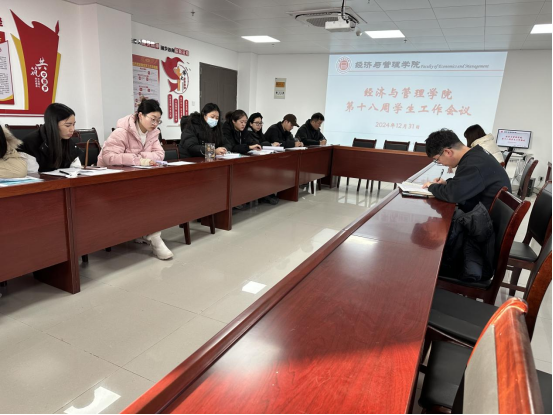 2024年12月31日,威廉体育在行政楼725会议室召开了本学期第十八周员工管理工作例会。公司书记助理员禹辛、团总支书记王绎程及全体辅导员参会,会议由经理助理叶赵强主持。