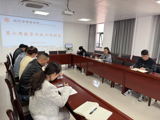 2025年4月9日,威廉体育在行政楼725召开第七周行政工作例会,经理吴玲、经理助理张珊、叶赵强实训室主任李健及各教研室主任出席会议。