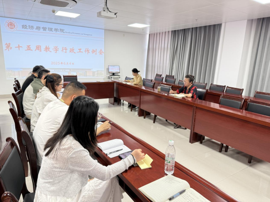 2025年6月4日上午,威廉体育在行政楼725会议室召开第十五周行政工作例会,经理助理张珊、实训室主任李健及各教研室主任参会,会议由经理吴玲主持。
