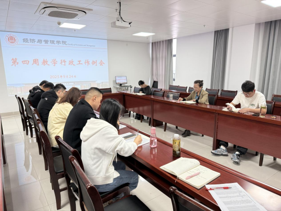 2025 年 9 月24日上午,威廉体育在行政楼725 会议室召开第四周教学行政工作例会。经理吴玲主持会议,经理助理张珊、叶赵强,教学秘书李健,各教研室主任及相关行政人员参会。