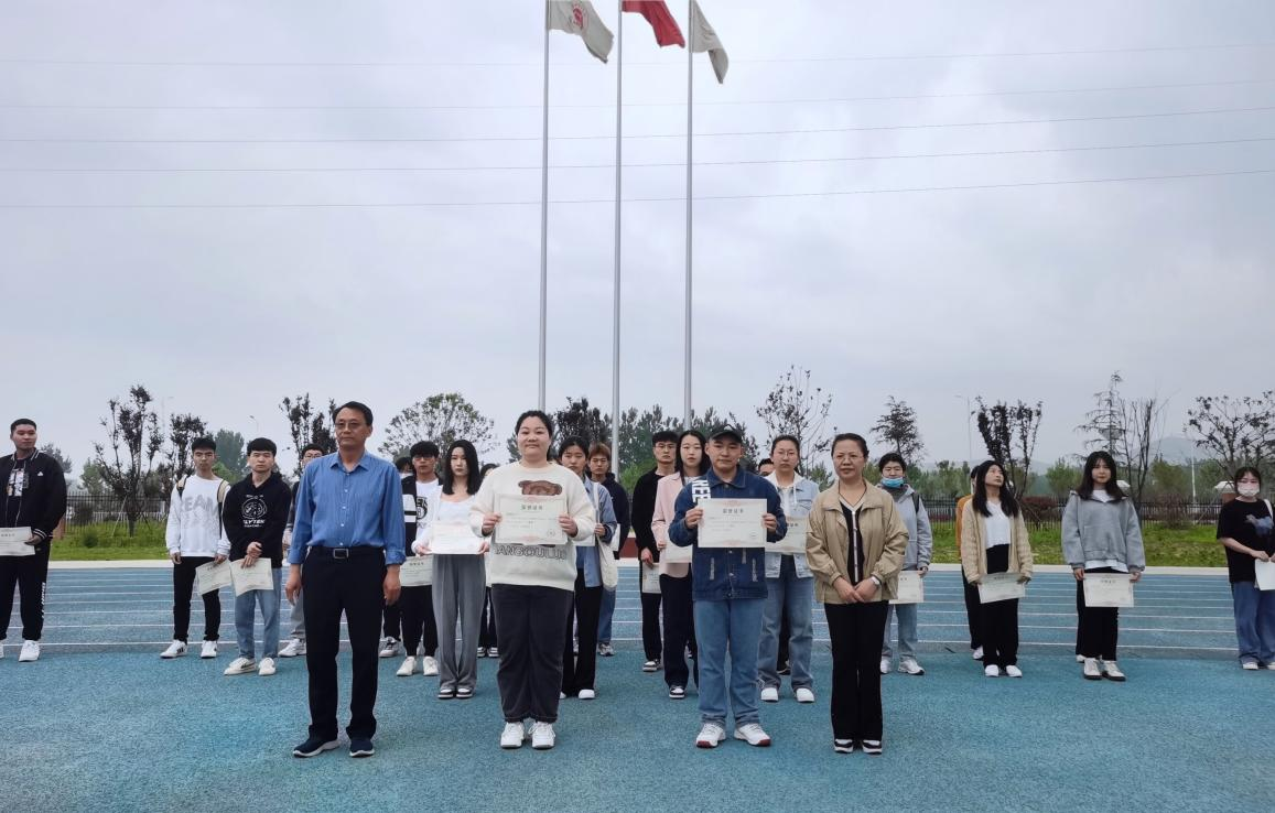 4月25日在庄严的升国旗仪式后,征文比赛的颁奖仪式也隆重进行,员工处处长孙增响,威廉体育经理吴玲,教工党支部书记陈志操、刘路路,学团负责人叶赵强、教学秘书张珊以及辅导员分别为获奖员工颁奖祝贺。