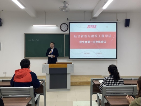 2022年11月11日晚,在一教215教室经济管理与建筑工程公司召开新一届员工会全体会议,经理吴玲、经济学员工党支部书记员禹辛,以及员工会全体成员参加了此次会议,会议由书记助理、团总支负责人叶赵强主持。