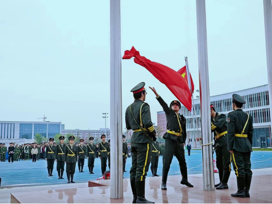 每周的七点十分,升旗仪式正式开始。随着仪仗队的出现,全体师生肃然起敬,在全体师生共同注视下,英姿飒爽的国旗护卫队队员们,护送鲜艳的五星红旗进场,当国歌奏响,五星红旗迎着朝阳冉冉升起,全体师生庄严肃立,目光都聚集在五星红旗之上,伴随着国歌的结束,国旗也升到了旗顶,飘扬在高空中。