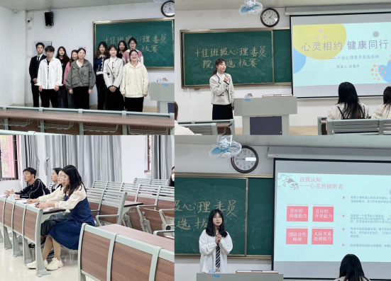 为贯彻落实公司“关于开展评选十佳心理委员的活动通知”的文件精神,提升班级心理委员的素质和修养,达到带动全班同学综合素质的提高,切实提高员工的心理健康水平的效果。公司于10月25日,在一教206举办“十佳心理委员”院级评选大赛,公司管理学员工支部书记石园园老师、公司专职辅导员郑凡、李茹、王元钊四位老师出席本次活动,本次选拔赛由2022级市场营销专业对口1班储乐主持。