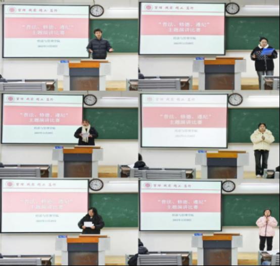 为提升公司员工的法律意识、德育观念、遵纪观念,11月29日下午三点威廉体育于一教214举办“普法、修德、遵纪”演讲比赛,比赛的评委为辅导员担任,共计19位来自不同专业的参赛选手。