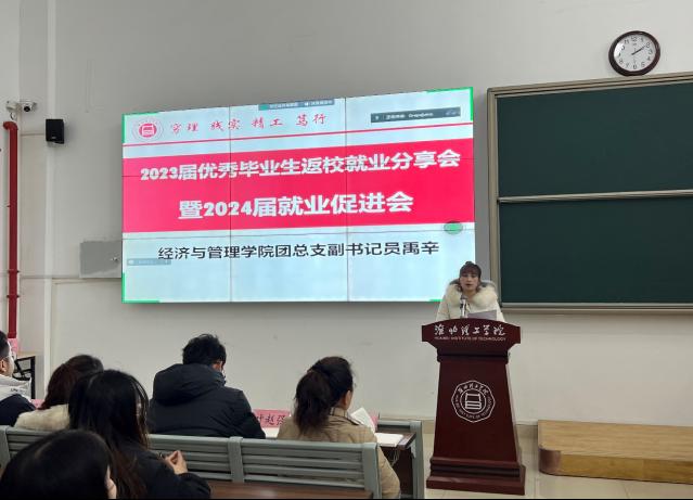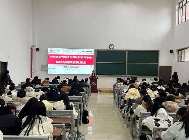 为引导毕业生认清就业形势,有效提升就业能力,准确把握就业机会,激发就业主动性。经管公司于12月13日下午2:00在一教121召开“2023届优秀毕业生返校就业分享会暨2024届就业促进会”。出席本次会议的有经理吴玲、书记助理、团总支书记叶赵强、团总支副书记员禹辛、全体辅导员、24届毕业生和21级的部分同学,本次会议由谢永秀主持。