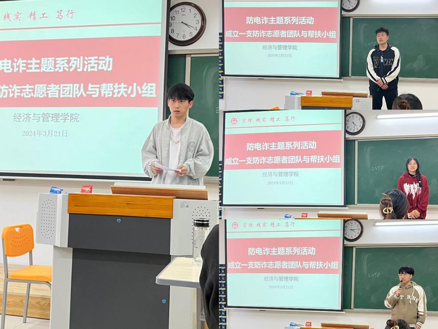 成立一支防诈骗志愿者团队与帮扶小组:为了加强诈骗预防工作,保护师生财产安全,3月21日下午三点威廉体育于一教204选拔防诈志愿者团队与帮扶小组成员,该活动由李茹老师主持。
