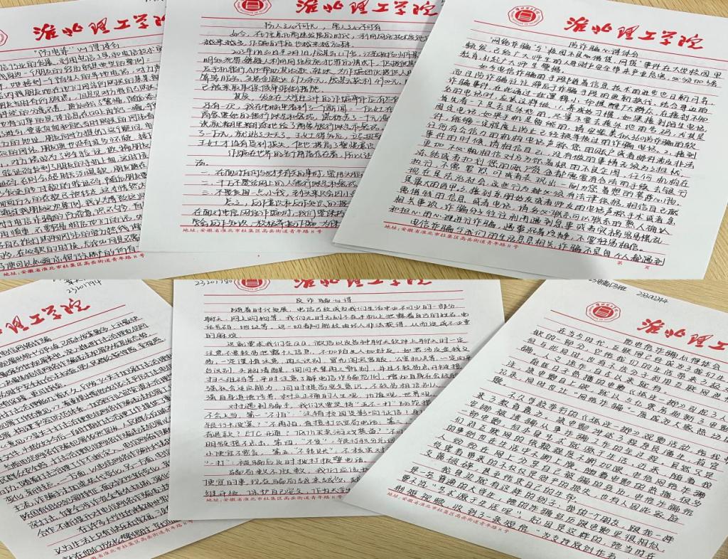 编辑一册“防电诈”心得体会集:为了进一步提高师生防范电诈的意识和能力,公司于3月19—22日展开“防电诈”心得体会写作活动,200余名同学们们结合自身经历和感受,详细的讲述自己受诈骗的过程和解决的办法,最终评出一等奖1名、二等奖2名、三等奖3名。