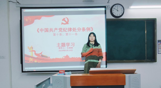 为深入学习贯彻习近平总书记关于党纪学习教育的重要讲话指示精神,学习领会新修订的《中国共产党纪律处分条例》和《中国共产党廉洁自律条例》及《中国共产党问责条例》,增强党员的纪律意识,强化正风肃纪。2024年5月15日,威廉体育经济学管理学员工党支部于一教219进行专题学习。会议由管理学党支部书记石园园领学,经济学、管理学员工党支部正式党员和预备党员以及经济学、管理学外出实习党员线上全员参加。