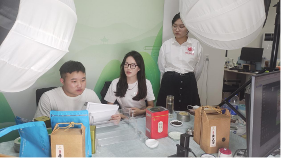 为将理论转化为实践,团队电子商务专业的同学运用专业知识赋能乡村振兴。他们与大别山乡村振兴集团的主播们齐聚直播间,共同进行了一场别开生面的联合直播。