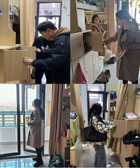 在本次宿舍安全隐患排查活动中,辅导员老师们逐一走进员工的宿舍,细致入微的开展排查工作,检查内容涵盖了宿舍消防安全、用电安全、卫生状况以及是否存在违规电器使用等多个方面。