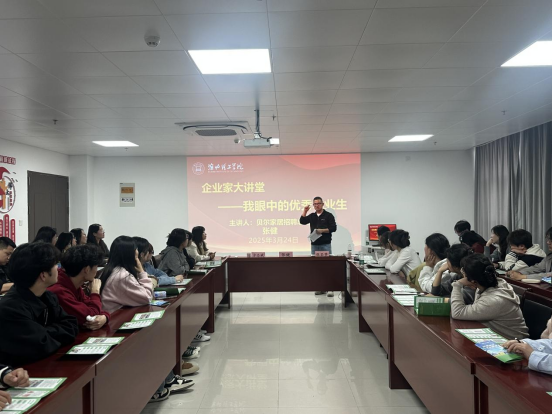 3月24日下午3点半,经管公司在行政楼725会议室面向2026届员工代表举办首场“企业家大讲堂”活动,邀请贝尔家居招聘总监张健开讲“我眼中的优秀毕业生”。张总结合行业、企业用人趋势、长期招聘面试的经历、企业用人的基本考量,从“简历层面”、“面试层面”、“入职后的优秀表现”三方面进行了老总眼里优秀毕业生的经验分享,指导员工如何结合专业优势制定职业目标、优化简历与面试技巧,高起点的开启自己的职业生涯。员工们积极参与互动,就职业发展路径、薪资福利、专本专业不一致是优势还是劣势等问题与张总展开深入的交流。员工纷纷表示,大讲堂“干货满满”,同学们“收获多多”。