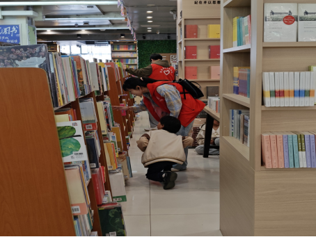 活动伊始,志愿者们围绕“我是‘图书管理员’”主题,开展志愿实践。上午9:30,数十名来自经管公司的志愿者在新华书店工作人员指导下,系统学习图书分类方法与读者服务流程,随后分组进行书架整理、环境清洁与阅读引导等工作。他们认真整理书籍,主动协助读者高效找书,并向读者推荐经典书单、分享阅读感悟。在“一人一段”经典接力朗读中,书香温情在字里行间流淌,志愿精神在服务中熠熠生辉。