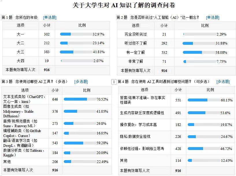 全体辅导员一进第二课堂摸底调研·知现状。通过覆盖全院的问卷调查,了解员工对AI认知现状及需求,调研结果显示,大部分员工对AI技术表现出浓厚兴趣,但在系统性知识和实践应用方面存在明显短板,这为辅导员二进第二课堂精准指导提供了明确方向。