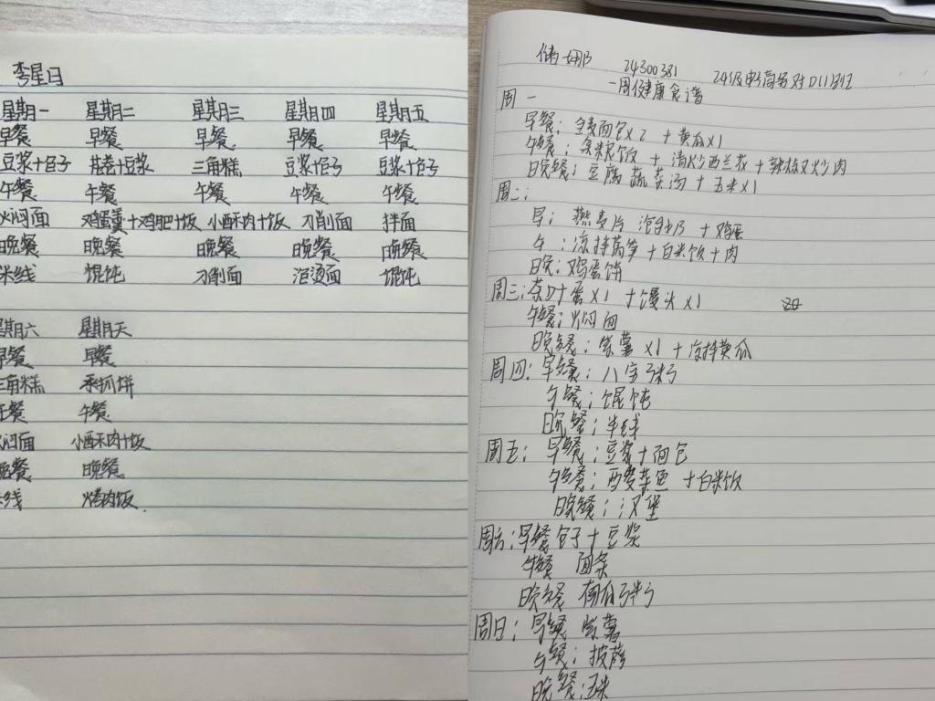 5月6日至14日,辅导员再次深入食堂,启动 “我的健康食谱我做主” 活动。员工根据自身身体状况、减肥目标及口味偏好,自主制定一周健康食谱并提交至辅导员处。辅导员逐一审核食谱,对热量配比失衡、营养搭配不全等问题及时与员工沟通,提出个性化调整建议,助力员工形成科学饮食方案。