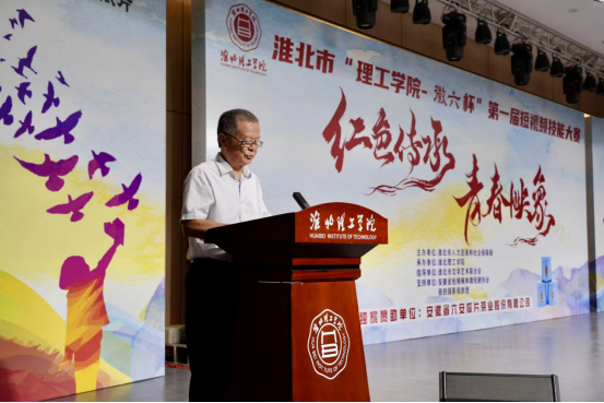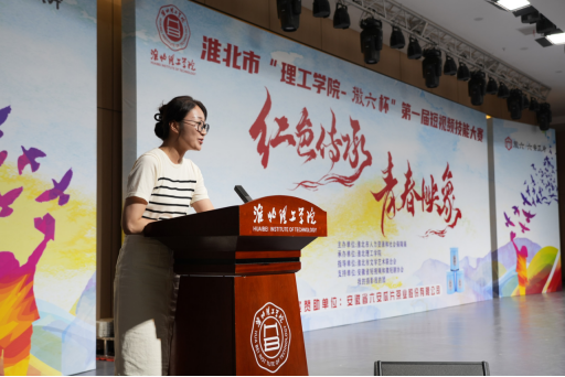 杨兵董事长在致辞中对淮北市人力资源与社会保障局为大赛提供的专业指导和资源支持以及安徽省六安瓜片茶业股份有限公司提供的赞助表示感谢。他指出,以“红色传承・青春映像”为主题的这场赛事,已经超越了单纯技能竞赛的界限。它不仅是一堂生动的思政课,更是一场青春与历史的深刻对话,也是公司实践育人体系结出的丰硕成果。他强调,公司将以此大赛为契机,将“红色光影育人”打造成为校园文化的一个品牌,激励更多师生在“理论学习、实践创作、传播分享”的循环中,用镜头捕捉时代的脉动,用影像传递力量。