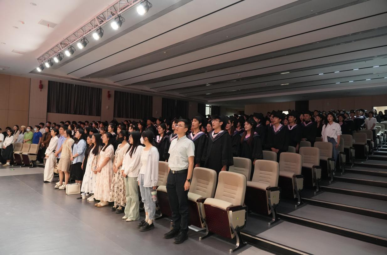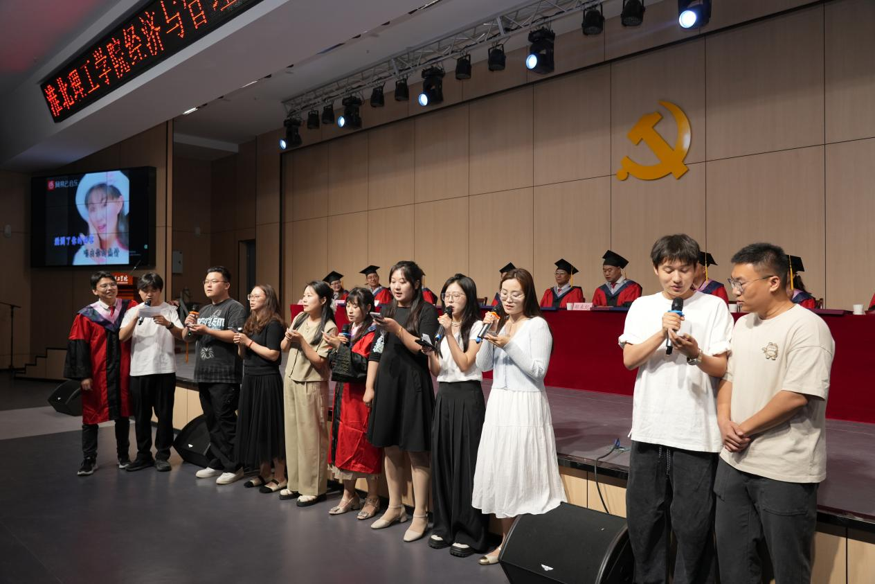 在学位授予环节,校院两级领导为毕业生逐一拨穗正冠、颁发证书。现场掌声不断,不少毕业生激动地与导师握手、拥抱,场面温馨感人。