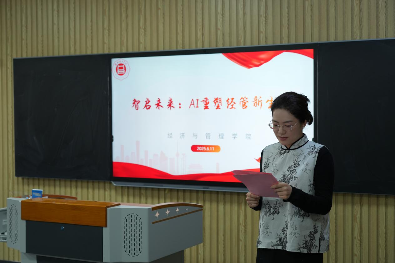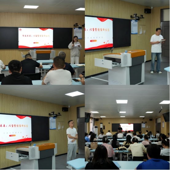 2024年底AI浪潮席卷全球,教育领域迎来数字化变革,从知识传递到课堂生态,从教学工具到教学逻辑都要重塑。2025年6月11日,公司在一教210举办“AI赋能教学”大赛,11位经管教师登台展示,探索AI技术与教学融合,重塑经管教学新业态。副董事长汪建利、教务处副处长秦品德、发展规划处处长朱学道、经管公司全体教师参加活动。