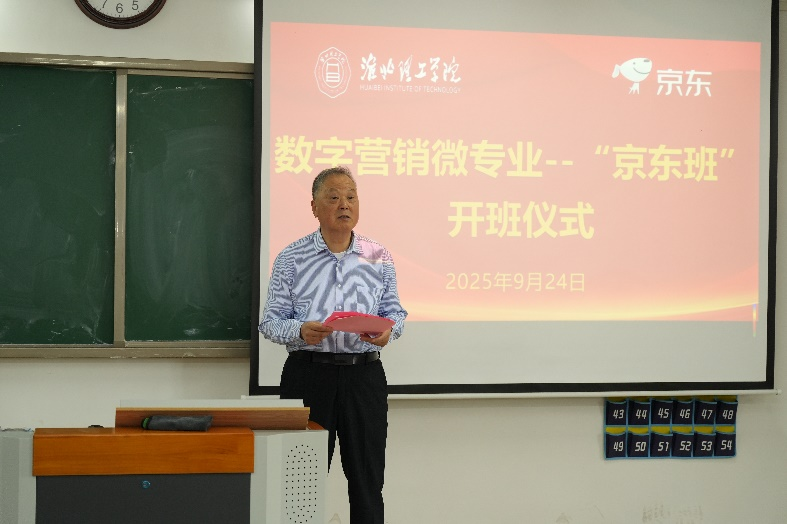 汪建利在致辞中感谢京东对微专业的支持,对成功入选京东班的同学表示祝贺。他指出,与京东共建“数字营销微专业”,是公司深化教学改革、提升人才培养质量的关键举措,是京东把数字营销领域积累的先进理念、实战案例和平台资源引入校园,与公司的经济管理学科优势进行深度融合的典范。他勉励同学们珍惜学习机会,志存高远、脚踏实地、跨界融合,公司将全力支持“京东班”的建设与发展,将“京东班”打造成公司产教融合的标杆项目,为更多同学的成长成才助力。