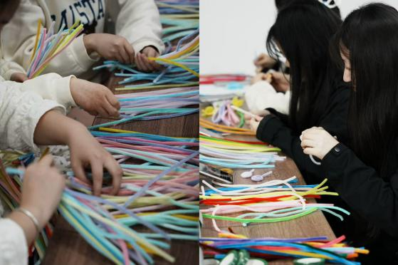活动以“手工+心理”为创新理念,将艺术疗愈融入心理建设。现场布置温馨雅致,五颜六色的扭扭棒、剪刀、胶水等材料整齐摆放,老师与员工志愿者提前布置场地,营造出轻松愉悦的创作环境。活动开始前,本次活动主持人做出了简短的心理引导:“扭扭棒看似简单,却能通过弯曲、缠绕、组合,变幻出无限可能。就像我们的情绪与内心世界,有时需要一个出口,去表达、去释放、去重塑。”