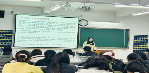 大会最后,教研室主任李莜莜针对实习安全与职业素养提出要求。她强调,实习生要认真执行公司和实习单位的各项规章制度;要发扬良好的精神风貌,讲文明、讲礼貌、维护公司的声誉;要严格要求自己,遵守职业道德规范,提高职业素养;要多虚心请教实习单位的领导、导师和工作人员。同时,实习生每周如实向实习导师汇报本人实习工作情况,以便导师了解员工实习情况,及时解决同学们遇到的困难。