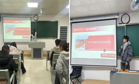 11月18日晚自习期间,2025级全体新生(含专升本班级)在固定教室参与消防安全主题宣讲活动。公司员工会成员,结合校园常见场景,讲解火灾核心知识。他们重点剖析了电器使用不当、违规用火等校园火灾主要成因,明确了宿舍大功率电器使用、教室易燃物品存放等消防安全禁忌。