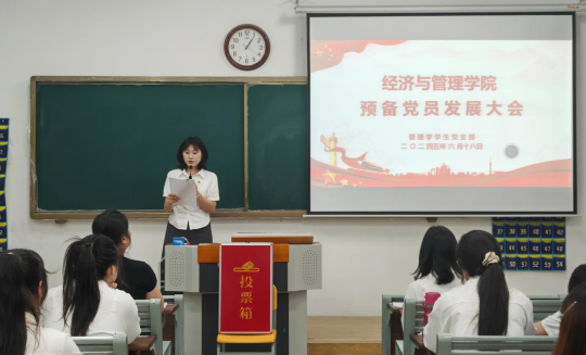 出席会议的人员有经济学员工支部书记员禹辛,管理学员工支部书记石园园,支部青年委员王绎程、两个支部全体员工党员以及本批22位发展对象。会议主要议题是讨论吸收洪可儿、赵凯丽等22名同志为中共预备党员的事宜。