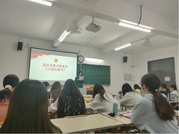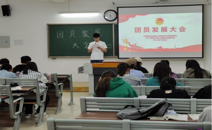 本次团员发展大会严格按照《团章》进行。第一个环节,由各团支部书记主持,清点各团支部团员人数,唱国歌,宣布会议开始。