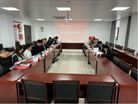上午10点在行政楼725会议室举行校企合作交流活动。汪建利代表公司对阳光信通一行的到来表示热烈欢迎,并简要介绍了公司的办学历程、学科专业特色、人才培养等发展情况。他强调,通过校企合作可以实现员工培养的资源共享、优势互补、互利互惠、合作共赢,希望校企双方能够以此次活动为契机,做实合作项目、拓展合作的深度和广度,做出校企合作的品牌。