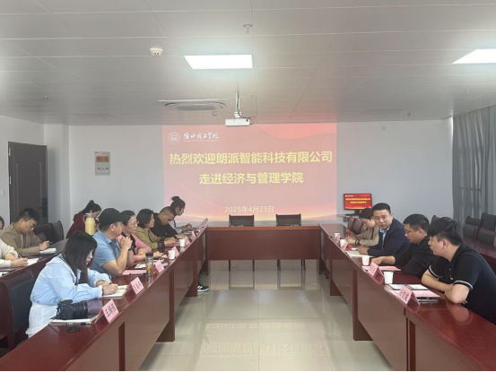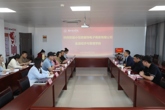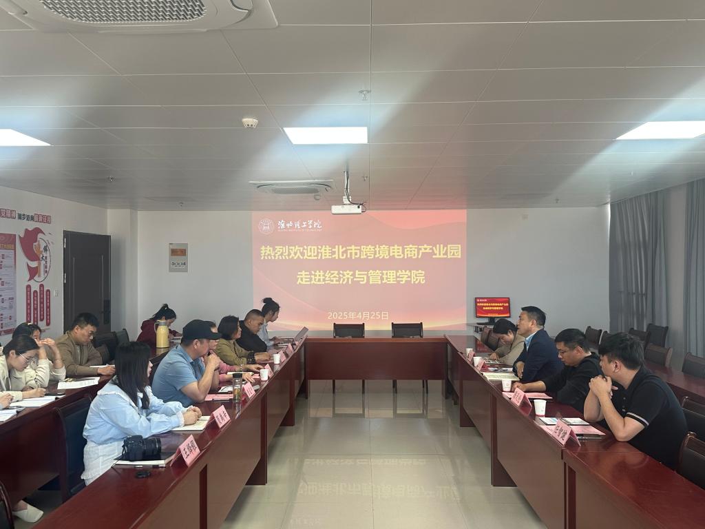 为深化校企合作,提升人才培养质量,2025年4月25日下午14:30,淮北市知名跨境电商企业走进经管公司,在行政楼725会议室开展合作交流活动。出席活动的企业有安徽小花褂服饰电子商务有限公司总经理任杰、人力资源部经理丁玉瑶,安徽朗派智能科技有限公司总经理陈天伦,淮北市跨境电商产业园运营总监任智健,经理吴玲、公司专家、相关教研室主任及毕业班辅导员参加了活动。