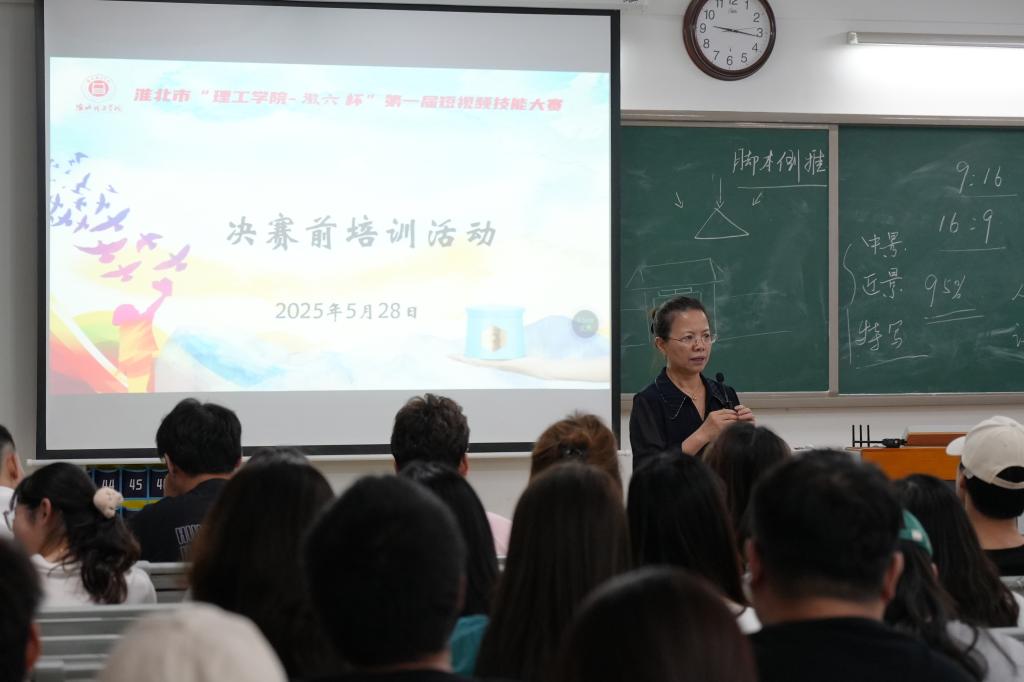 2025年5月28日晚19:00,淮北市“理工公司杯”短视频技能大赛决赛前培训在二教422室如期举行。本次培训旨在助力晋级决赛的各小组高质量完成作品,大赛组委会特邀马克思主义公司孙澄澄老师、威廉体育外聘教师陈烨担任主讲,晋级决赛的各小组成员齐聚一堂,认真汲取创作知识与技巧,参加本次活动的参赛人员约200名。