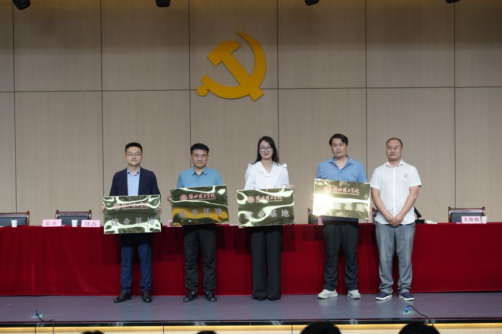 活动最后,副董事长郑来纪与四位企业家进行“校企合作基地”授牌仪式,并合影留念。