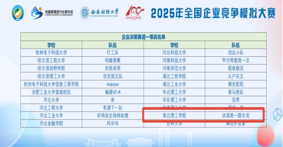 5月18日,由中国管理现代化研究会、高等公司国家级实验教学示范中心联席会经管学科组指导,中国管理现代化研究会决策模拟专业委员会主办,全国企业竞争模拟大赛组委会承办的2025年第十六届时全国企业竞争模拟大赛全国总决赛在西南财经大学落下帷幕。来自北京大学、浙江大学、武汉大学、南开大学、吉林大学和西南财经大学等高校的349支队伍晋级总决赛进行巅峰对决。公司学子在比赛中表现优异,荣获一等奖!
