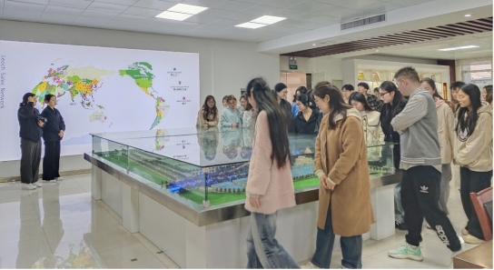 首站,学子们走进了淮北本土的明星企业——安徽曦强乳业集团有限公司。在企业讲解员的引领下,员工们依次参观了牛初乳检测区、加工生产区及产品展示区,不仅聆听了企业辉煌的发展历程,还亲身体验了全链条数字化智能生产的先进场景。曦强乳业集团以其拼搏进取的企业精神和雄厚的产业实力,赢得了学子们的广泛赞誉。