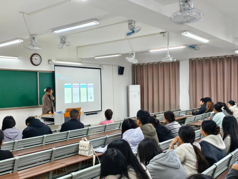 在互动交流环节,同学们围绕岗位能力要求、实习培养机制等问题积极提问,范雪梅与周雪如逐一耐心解答,现场氛围热烈。范雪梅表示,企业高度重视人才梯队建设,希望通过校园招聘吸纳更多优秀学子,同时期待与公司深化合作,共同培养符合产业需求的应用型人才。