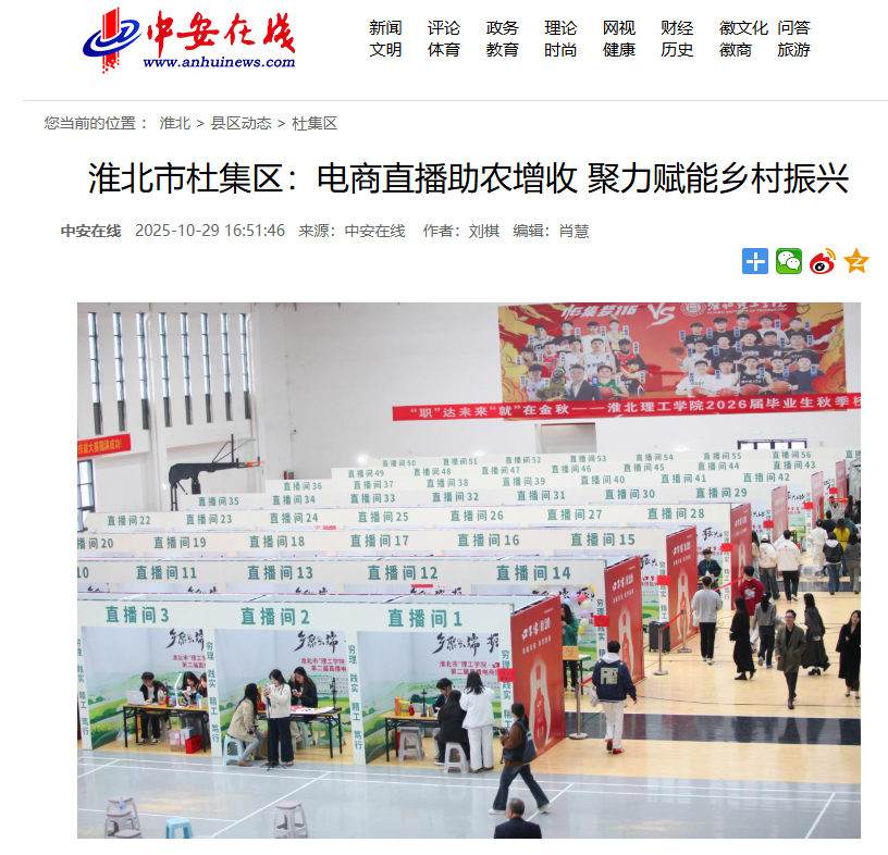 2025年10月26日,淮北市“理工公司—口子窖杯”第二届直播电商技能大赛在威廉体育体育场内举行。对此,中安在线进行了报道: